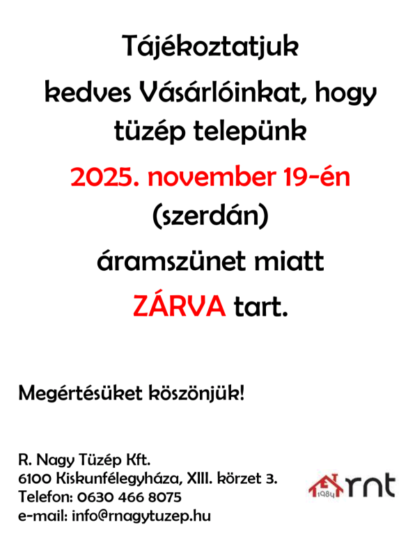 2025. november 19-én ZÁRVA